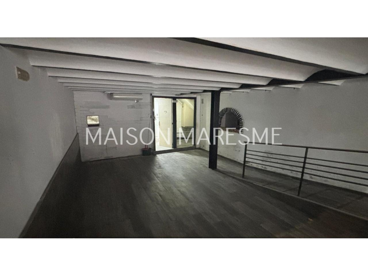 Local comercial esquinero de 225 m² ubicado en la calle Ample, en pleno casco antiguo de Canet de Mar, junto al Ayuntamiento.